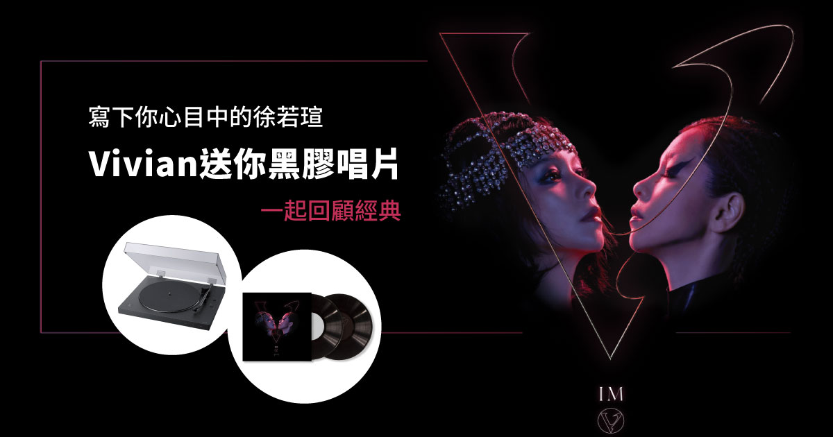 即日起至4/1,只要在下方留言「你認為《I’m V》專輯中最能代表徐若瑄的歌曲」,並且寫下給Vivian的生日祝福,就有機會獲得徐若瑄送你的《 I`m V 》新歌加精選(絕代雙黑膠)+SONY 黑膠唱盤一組!