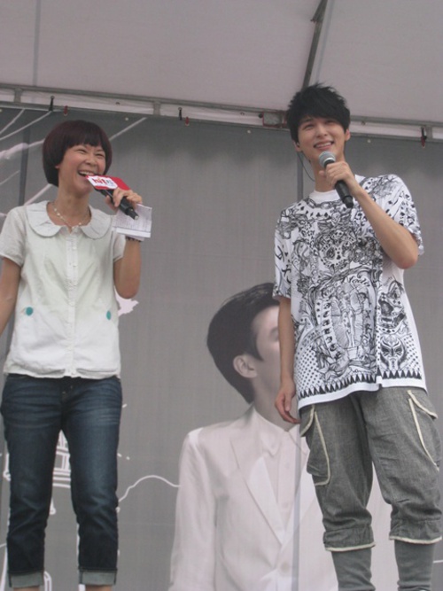 | 金曲失意,但代言不斷的嚴爵,發行個人第二張創作專輯【不孤獨】,日前宣佈將於8/27在台北國際會議中心舉辦『沒有你 怎麼辦』演唱會,周末也在台北舉辦演唱會簽票會。 太陽高照的午後,一身嘻哈裝扮的他,在演唱『沒有你怎麼辦』後,汗水就像雨水一樣大珠小珠落不停。他自己也自爆說:『有一天媽媽去做晨間運動,鄰居太太恭喜他兒子第一名,還以為是說他唱片成績很好,結果是日前電視台票選他為”爆汗王”第一名,比潘瑋柏還會流汗!』聽的讓大家哭笑不得。他自己也說他會隨身攜帶3條毛巾、3包面紙、3套宣傳服可以隨時替換,主持人阿娟說:『不如演唱會你就準備30條毛巾,擦完汗就送給歌迷,當作是演唱會的贈品!』 簽票會現場唱片公司也準備了『打破紅盤』儀式,希望嚴爵8/27演唱會的票房可以開出紅盤。而新歌『沒有你怎麼辦』MV中的『光之塔』動畫作品的導演,也現身現場為嚴爵加油打氣,讓嚴爵大為感動! |