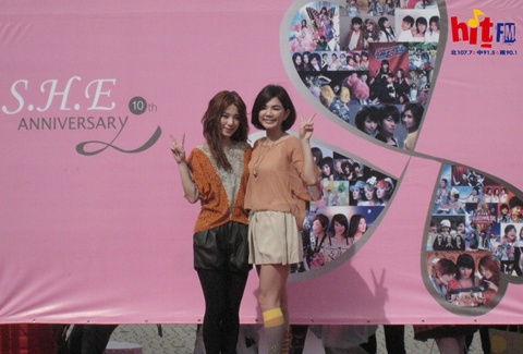 | 超級新天后-『HEBE』田馥甄週日在台北舉辦新專輯【My Love】的簽唱會,而9/11這天也是S.H.E成軍的第十年,所以台下擠滿了歌迷,除了來支持田馥甄外,也是為了來幫S.H.E十週年紀念來慶生。 只是成軍十年的今天,現場僅有HEBE和ELLA兩個人代表來慶生紀念,唱片公司為了能讓三人合體現身,特地準備了SELINA的人型立牌,ELLA笑說:『S.H.E很特別,永遠都會有人型立牌夾在彼此中間,還開玩笑地說希望製作人型立牌的廠商可以算她們便宜一點。』 而現場也準備了一顆大大的「雙十」蛋糕,ELLA說「雙十」的意義是因為她們已經擁有了第一個十年,希望未來還有另一個十年慶生的機會。而這塊蛋糕也在簽唱會開始之餘,分別切給現場的歌迷朋友們一起來分享喜悅! 當天HEBE和ELLA也一起合唱的『妳』送給好姊妹SELINA,因為ELLA是第一次公開演唱這首歌曲,眼淚也差點都快噴出來了!但ELLA呼籲現場的歌迷請多給她們一點時間,她相信三個人很快就可以在一起,出來唱歌給大家聽,也要歌迷們用更多正面的心來支持SELINA。ELLA這樣的呼籲也讓主持人阿娟大呼ELLA果然很樂觀正面,ELLA也笑說自己真的很適合出來競選(但阿娟建議可以先從”里長”開始啦~~)。 當然在結束慶生儀式後,場子就交還給當天的另外一位主人『HEBE』,一開場就帶來了專輯裡的兩首歌曲,其中當HEBE選唱了「花花世界」時,還要求現場的歌迷要配著她一起合唱副歌聲樂的部分。 |