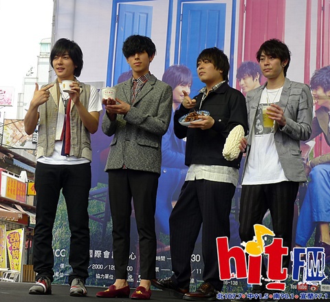 | 「日本國民天團」 flumpool凡人譜將於7/4在台北國際會議中心舉辦【flumpool Taiwan Special Live 2015 at TICC】。為了這次演唱會,他們也打破日本樂團前例,將他們有史以來首次簽票會初體驗獻給台灣歌迷。這場簽票會也吸引了滿滿的歌迷擠爆西門町現場。主唱隆太說:「在來台灣之前,五月天的怪獸偷偷跟我說,在台灣來參加簽名會的女生都很漂亮,我剛剛一看,還果真如此,大家都好可愛喔。」讓台下歌迷尖叫不斷。 年年來台灣舉辦演唱會,規模一次比一次更盛大,被問到7/4演唱會有什麼特別表演?主唱隆太說:「我這次要來復仇!因為去年演唱會我花了三天準備” 墓仔埔也敢去”,吉他手一生只花短短時間練習”姐姐”,結果隔天一生成為了媒體的焦點!」此話一出,笑翻台下歌迷。 選在觀光勝地西門町舉辦簽名會,唱片公司特別準備西門町「阿忠麵線、楊桃冰、蜂蜜苦瓜枝和鴨舌頭」等台灣在地小吃讓flumpool品嚐,其中鴨舌頭怪異的形體讓團員們面露難色,但在團員一個一個試吃大讚好吃後,原本抗拒的主唱隆太也鼓起勇氣吃了一口,發現原來這是個好東西! 首次舉辦簽名會,唱片公司也送上大型演唱會門票和簽名筆,恭賀他們的簽名會初體驗。flumpool也特別準備禮物,只要是購買7/4演唱會搖滾區門票的歌迷,就可獲得由元氣親自手繪的「台灣特別限定禮!」 |