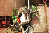 最後在拍照的時候還騎上道具腳踏車笑著說要騎車戴左小去花蓮跟宜蘭見識一下台灣優美的風光跟美味的小吃,兩個不同地方長大的音樂大頑童在舞臺上究竟會撞擊出什麼火花?就請歌迷拭目以待。