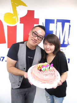 6月30日是MOMO醬在Hit Fm90.1高屏電台主持的最後一天,上午九點未到,大批人馬就埋伏在播音室外,其他DJ與同事們準備給MOMO醬一個大驚喜。節目一結束,正當MOMO醬還依依不捨的在播音室內回覆聽眾的留言祝福時,大家拿著精心準備的蛋糕與拉炮衝進錄音室,讓已經在錄音室淚崩的MOMO醬又驚又喜,還嚷著「怎麼這樣啦!也太感人了吧!」,為了讓氣氛歡樂一點,還有同事打趣著說:「沒關係啦!我們只是為了發稿而已!」,讓MOMO醬聽了又好氣又好笑。