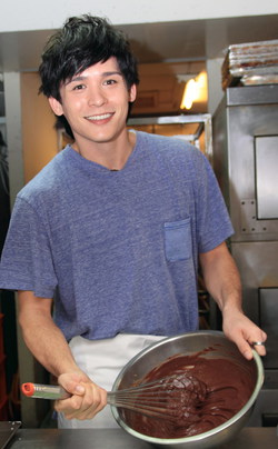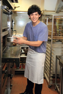 一踏進通告地點─「Bonjour朋廚烘焙坊」,倪安東就被空氣中瀰漫的麵包香深深吸引,與電影【愛的麵包魂】裡演出歐洲學成歸國的美食達人角色相呼應,私下也嗜吃蛋糕甜食的他開玩笑地表示:「看我的身材就知道我根本不怕肥,只要開心就好,但為了鏡頭好看我會控制食欲並吃得健康啦!」對做蛋糕很有興趣的他,透露未來想開間蛋糕店,至於會不會親自製作仍是未知數,「我覺得擠奶油或灑糖霜很帥,加上打麵糊粉漿的動作可以順便練練二頭肌囉!」或許是第一次和女生一起做蛋糕感覺新鮮,他建議男生如果和女友發生爭執,不如安排一起做蛋糕來回溫合好。屢次公開自己是崇尚浪漫主義的倪安東,喜歡製造驚喜討女友歡心,馬車漫遊、噴漆獻情或石塊排字不足為奇,還曾親自下廚想滿足女友的胃,「我對做菜相當有興趣,曾經試過炸魚給女友吃。」女友的評價為何?「用心,但真的很難吃。」廚藝可以精進,但想為對方作菜的心也證明他是十足的新好男人。