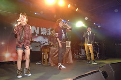 一出場就先帶動現場氣氛的大嘴巴,首先以全新單曲「張大你的嘴巴」開場,電音音符隨著台上四人的熱情,在週日雨不停的午后躁動,所有人無不張嘴大聲吶喊,宛 如像在夜店般的狂舞擺動HIGH到底!緊接著演唱的第二首新曲「看到鬼」,又是一段聽覺與視覺的感官刺激經驗。即將在4月發行全新專輯的大嘴巴,首波主打 「Mayb的頻率」也將在Hit Fm進行全球首播,無壓力的情歌在春天聽來分外輕鬆。最後,當然也不免俗地要全場一起「喇舌」好鹹濕!此外,40分享網拍面交的經驗,「我買的是飾品,賣家是一 個往返台灣與日本兩地的日本人KEN桑,有聽媽媽的話要選在明亮人多的地方,所以兩人就約在南京西路新光三越旁的麥當勞面交。」宗華和40也分別有被騙的 經驗,宗華曾買過假的草蜢《忘情森巴舞》黑膠唱片、40則是貨到後才發現買的小瓶香水組合過期臭酸,但因礙於藝人身份而因此作罷!懷秋喜歡收集球鞋,曾等 了一天一夜只為標下一萬多元的喬登限量款球鞋,「當了藝人後,我還有一次標下球鞋約面交,先是請弟弟確認球鞋的真假才出面!」面對近來林書豪風潮,四人雖都徹夜守在電視機前看林書豪比賽,但對週邊商品並不熱衷。