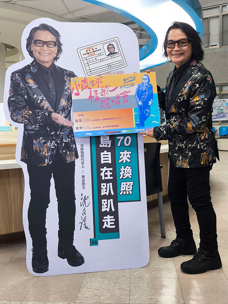 「雙金歌王」沈文程日前擔任「高齡換照新制」代言人,親自開車載著交通部長陳世凱帥氣進場,兩人在台北士林監理站現場合體,沈文程率先開唱經典曲〈五月十一彼下埔〉揭開序幕,這首歌象徵新制將於明年5月1日正式上路,也成了這場政策宣導最契合的開場。沈文程表示第一次被全台性的官方活動欽點,覺得「無限光榮!」,又稱自己是「模範生」,不但自己率先要去換照,還會出席全台6場快閃活動,陪大家一起換照!沈文程同時也宣布,將於2026年5月9日(六)台北國際會議中心TICC與5月16日(六)台中中興大學惠蓀堂舉辦《國際沈文程日—小琉球情歌演唱會》,邀粉絲共度「星空下的海灘夜」。購票請洽《年代售票》官網(www.ticket.com.tw)。