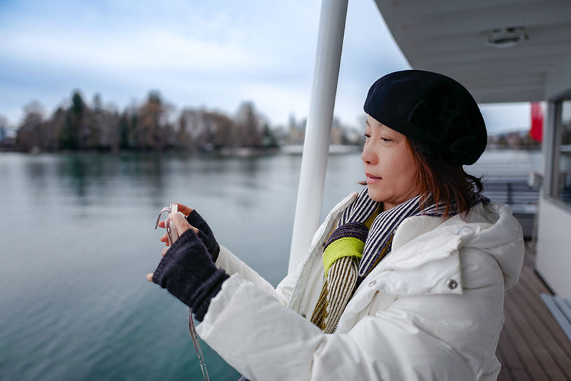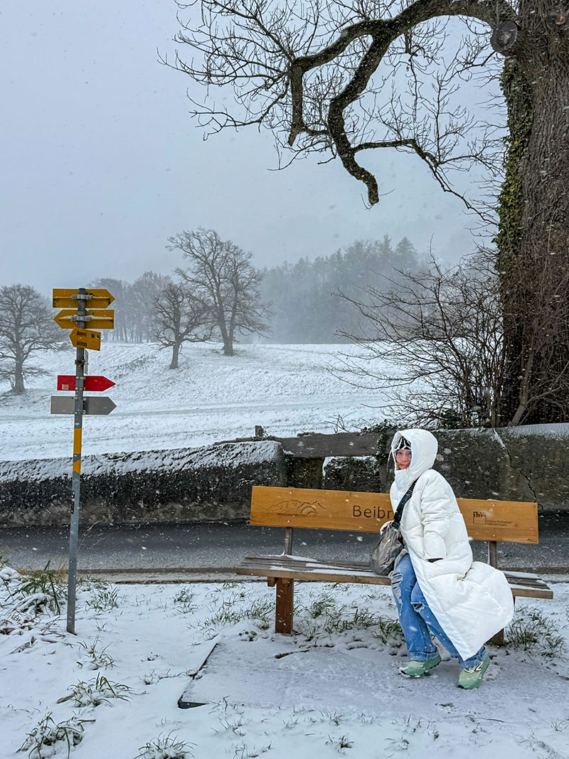 這趟旅行本來只打算賞深秋楓紅,結果歐洲突然寒流來襲,她此生第二度遇見名符其實的瑞雪。「雪地會把聲音全部吃掉,那一刻世界變超安靜,像白色冥想。」她在阿爾卑斯山的雪地裡被自然徹底洗版,直呼「心被按下 reset」。