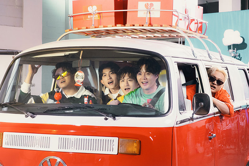5人在〈愛你敢有望〉 MV化身成愛情快遞員,共同搭乘一台小貨車出發去送禮,有趣的是,大夥們得全擠在小空間裡拍攝,是否有因此增溫感情?王開玩笑回應:「我們今天算是有一起車震過了!」Nelson則表示為了拍攝角度,整場得靠著腰力,用核心肌群來撐住身體;士捷則災難連連,繼上回拍攝冰球MV被酒瓶砸頭後,這次又在要跑上麵包車時,頭撞到車頂,立刻腫了一包,所幸冰敷無大礙,被團員笑稱是「另類加戲」!蒙被問及台語程度,他自招不會說,緊接試著用台語自我介紹,被富凱形容有一種外文風格。