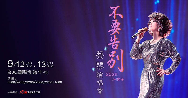這場絕無僅有的台北限定返場演出--《蔡琴 不要告別 巡迴演唱會 2026加演場 》,將於 9 月 12、13 日在台北國際會議中心(TICC)隆重登場。門票於 4 月 26 日(本週日)上午 11:00 在 ibon 售票系統正式開賣。蔡琴邀請每一位「家人」再次入座,期盼大家能在歌聲中重拾那段永不褪色的純真年代。