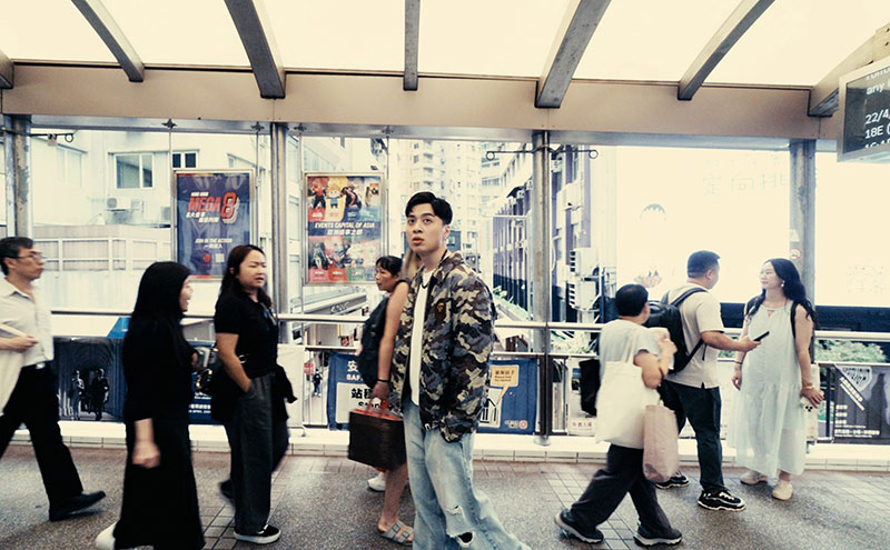 MV拍攝回到他最熟悉的香港中上環,與兩位00後導演合作,透過模仿與解構社群常見「吸睛畫面」,打造虛實交錯的影像語言。畫面中可見定格於人流天橋的孤立身影、「影分身」並存、甚至「自己踢飛自己」的荒誕設計,象徵現代人在虛擬世界中的分裂與抽離。